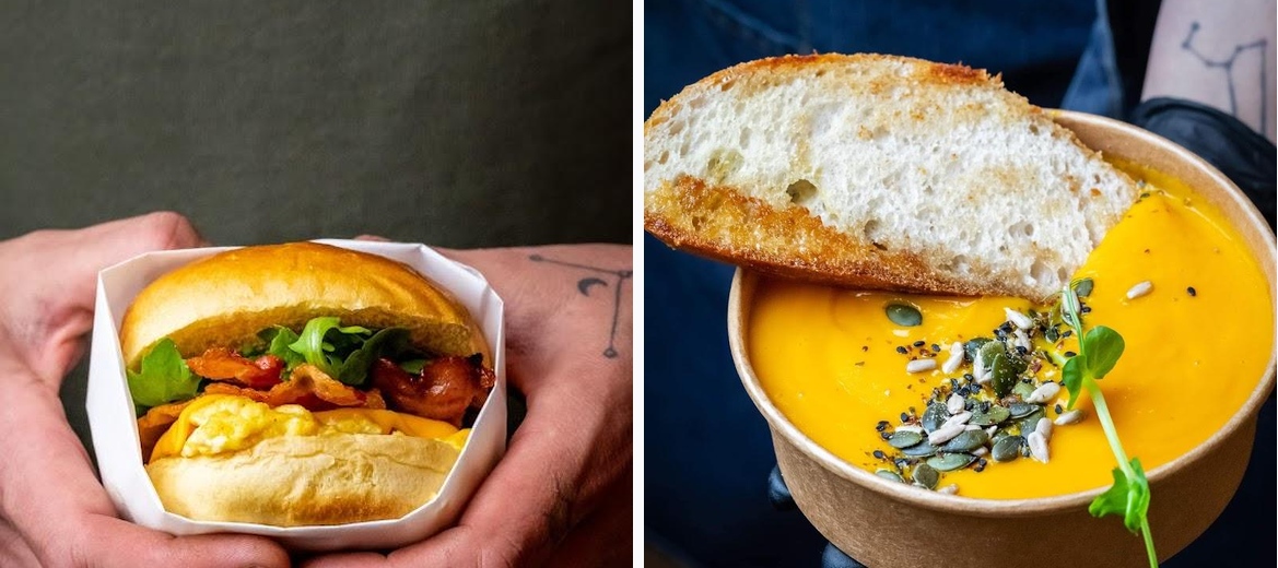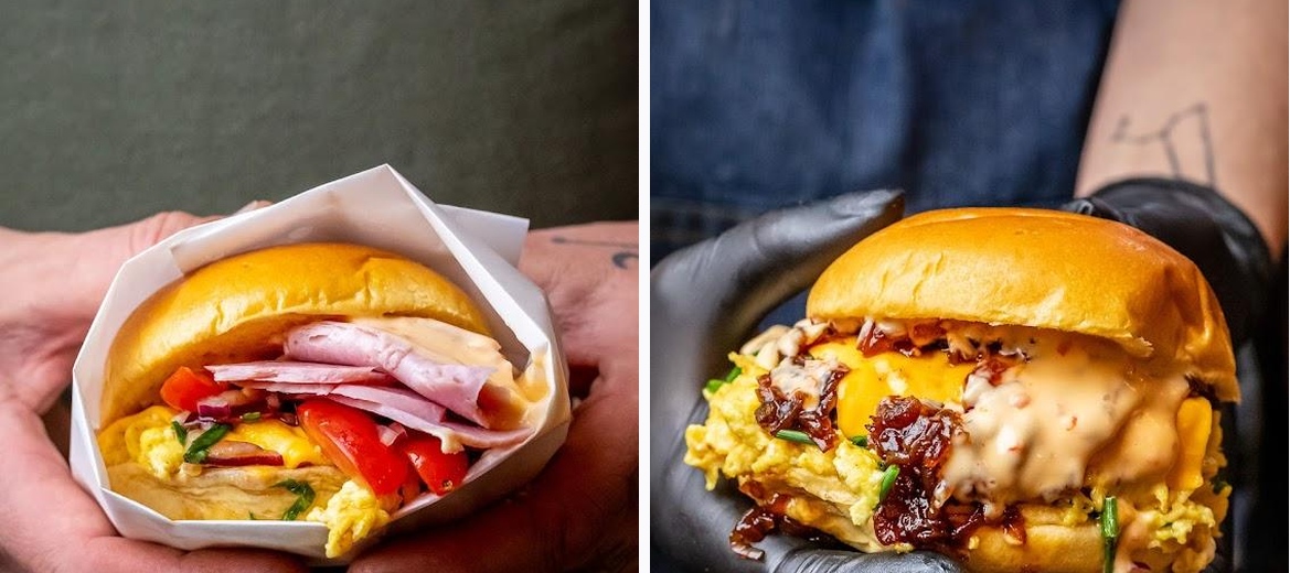 Passion Kiosk offers a variety of options including breakfast muffins, scrambled eggs on brioche buns, and jumbo sandwiches.